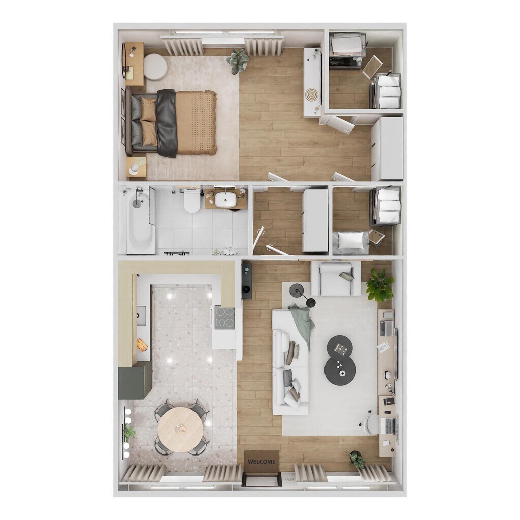 1 Dormitorio, 1 Baño, 704 pies²Disponible AhoraGalería del Modelo