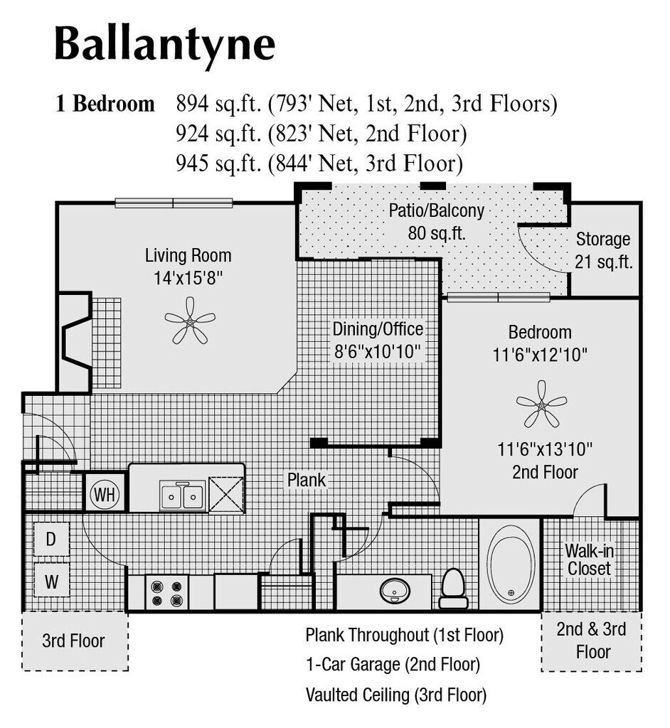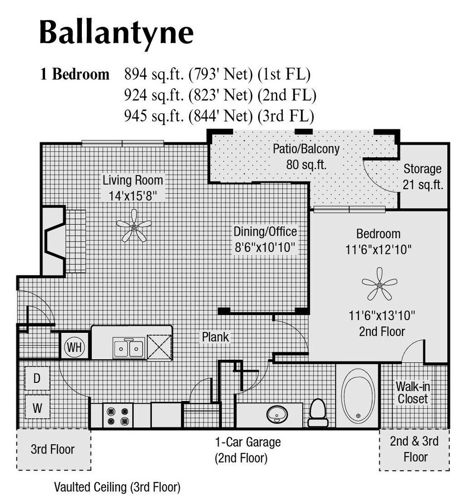 Ballantyne ofrece apartamentos de 1 a 3 Dormitorios desde $1,212 con 692–1,447 pies cuadrados. Aquí está el precio actual y la disponibilidad: