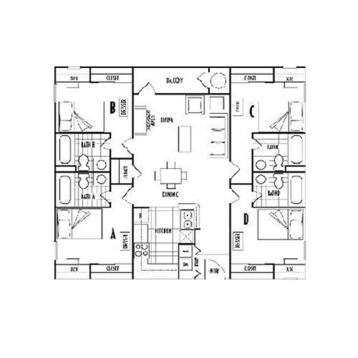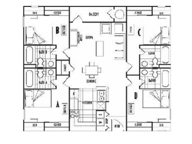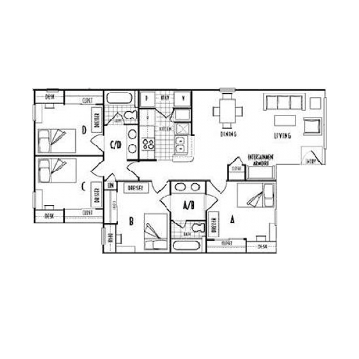 Modelo de apartamento: 4x4 UGDesde $6304 Dormitorios, 4 Baños, 1220 sq ftDisponible Ahora![]()