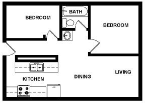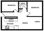 2 Dormitorios, 1 Baño, 825 pies²Disponible AhoraGalería del Modelo