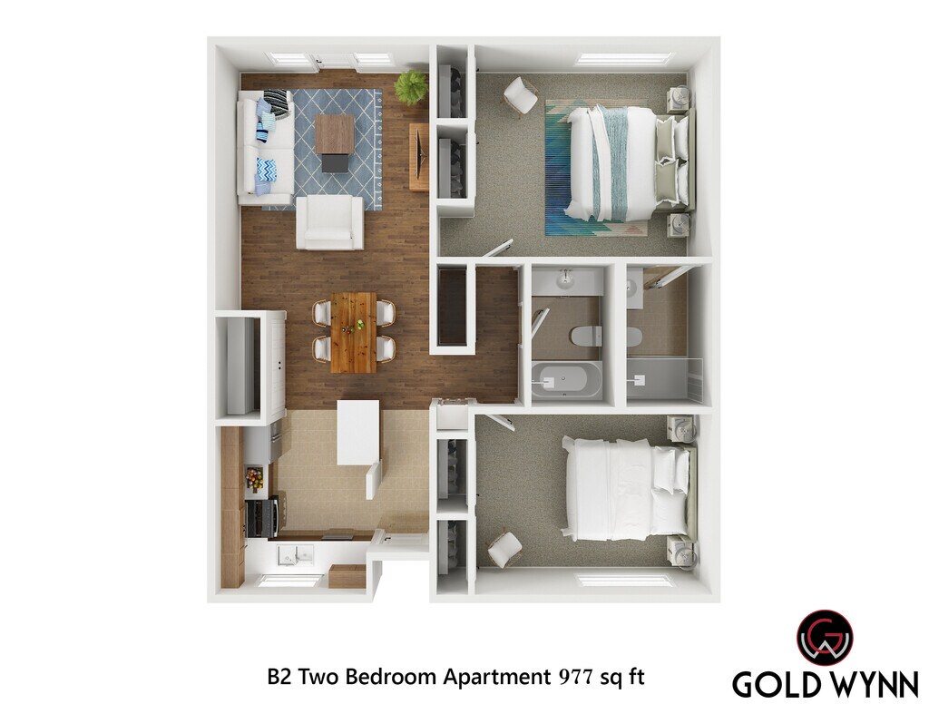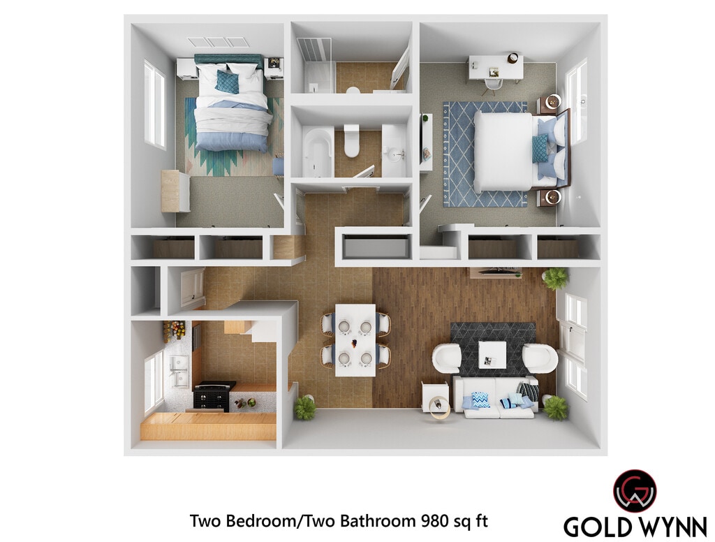 2 Dormitorios, 2 Baños, 980 pies²Disponible AhoraGalería del Modelo