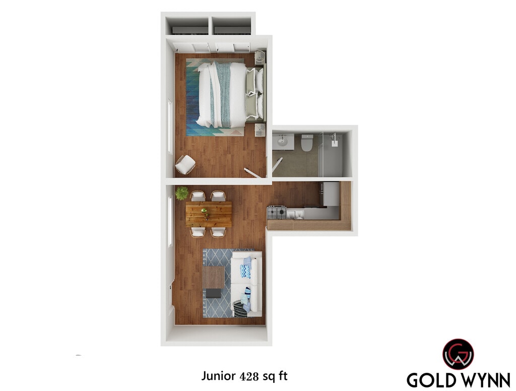 1 Dormitorio, 1 Baño, 428 pies²Disponible AhoraGalería del Modelo