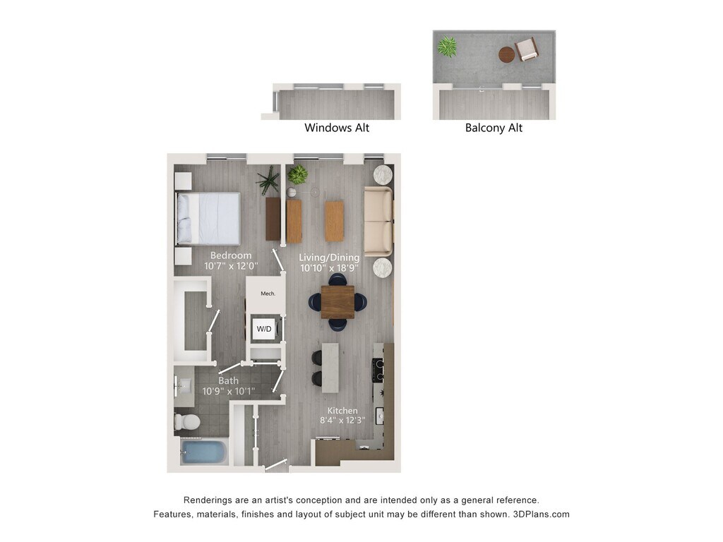 1 Dormitorio, 1 Baño, 726 pies²Precio Mensual TotalDisponible AhoraPrecio Mensual Total