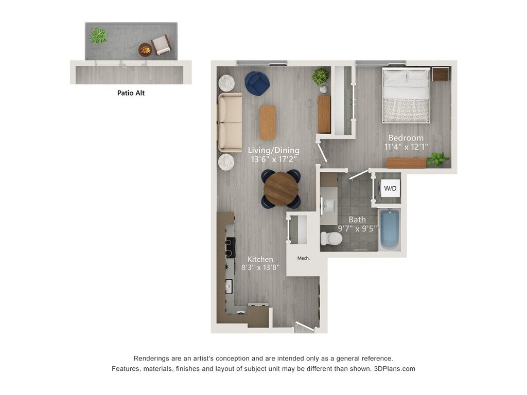 Modelo de apartamento: A1 - Affordable$1,4471 Dormitorio, 1 Baño, 715 sq ftDisponible AhoraLos planos son representaciones artísticas. Todas las dimensiones son aproximadas. El producto y las especificaciones reales pueden variar en tamaño o detalle. No todas las características están disponibles en cada vivienda en alquiler. Por favor, consulta con un representante para obtener más detalles.