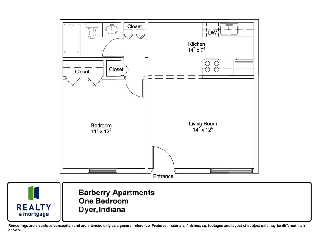 Barberry Apartments se encuentra en el código postal 46311 de Dyer, IN. Esta comunidad está gestionada profesionalmente por Realty & Mtg Co Lincoln Park