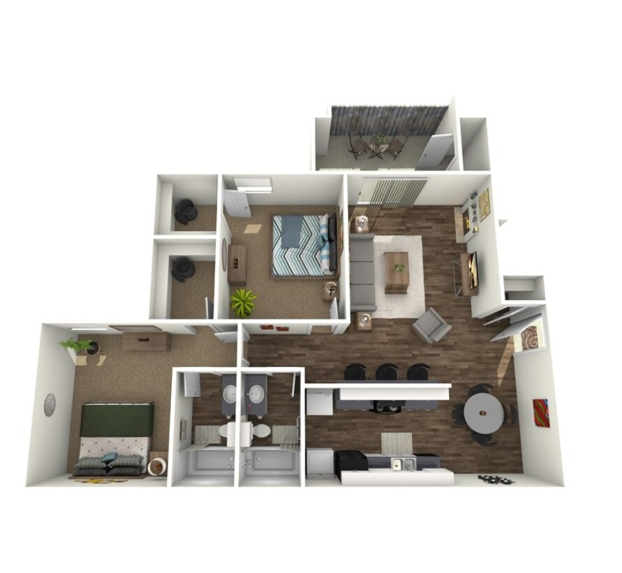 1 Dormitorio, 2 Baños, 866 pies²Disponible AhoraEl más grandeEsta opción tiene las unidades más grandes para este modeloGalería del Modelo
