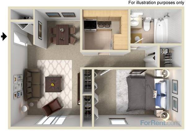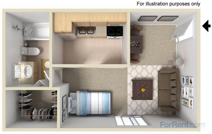 Modelo de apartamento: StudioDesde $815Estudio, 1 Baño, 387 sq ftDisponible AhoraPlanosFotos![]()