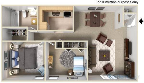 Modelo de apartamento: 1 Bed 1 BathDesde $9401 Dormitorio, 1 Baño, 623 sq ftDisponible AhoraPlanosFotos![]()