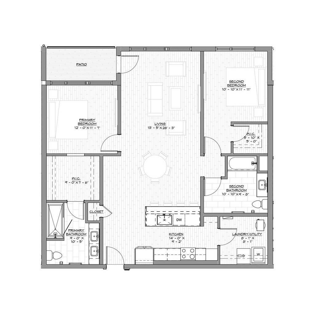 2E (Townhouse) - Plano 1 Two Bedroom Two Bath