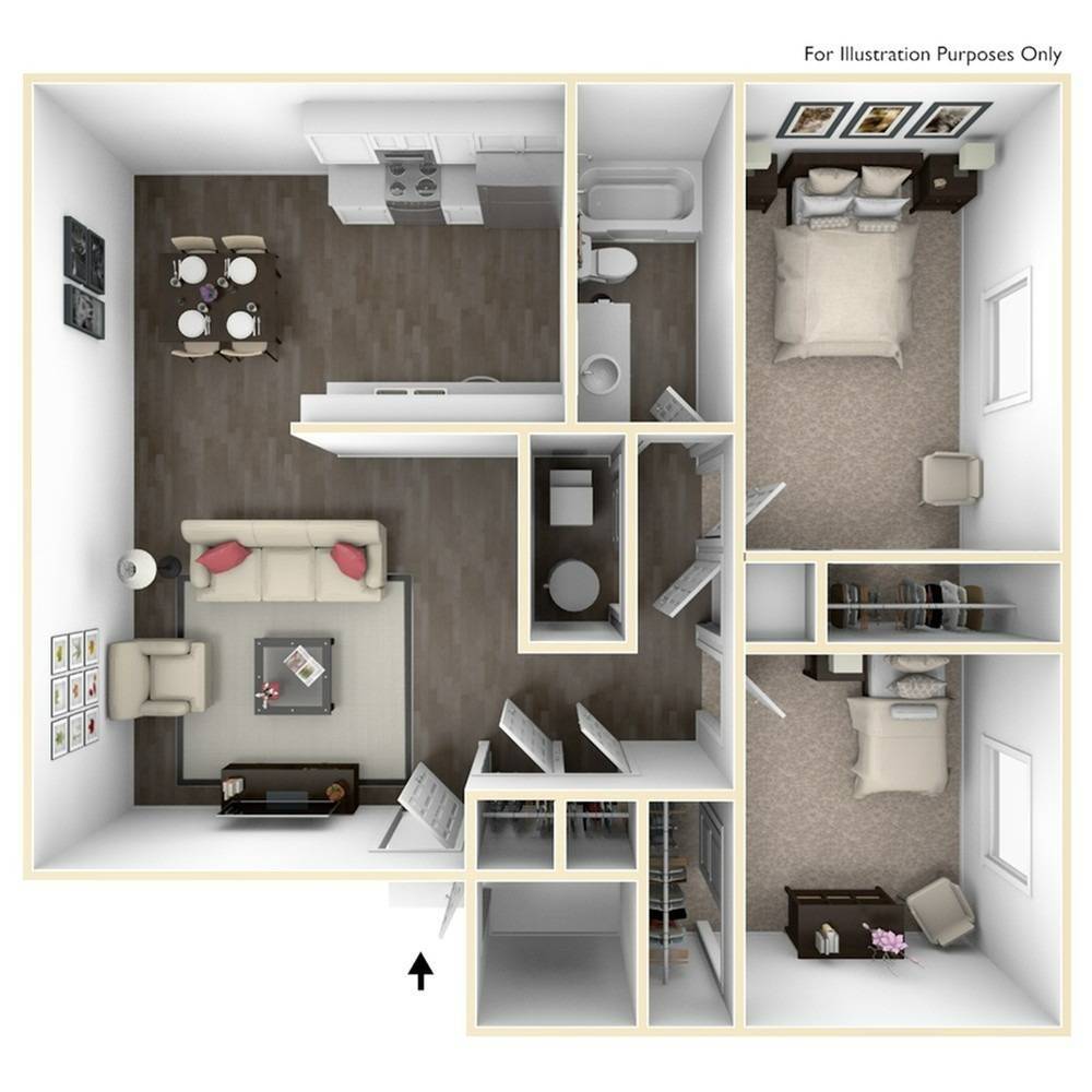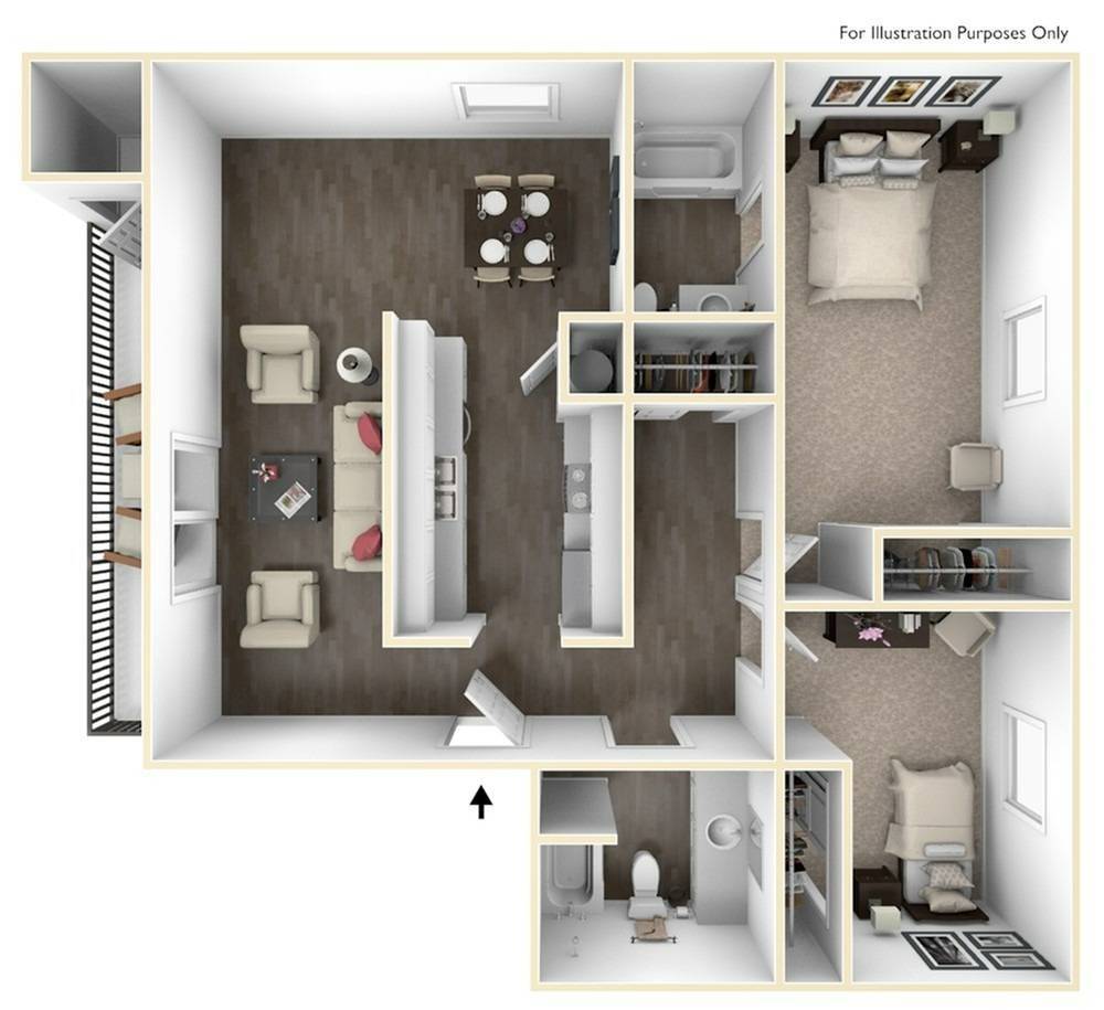 2 Dormitorios, 1 Baño, 860 pies²Disponible AhoraGalería del Modelo
