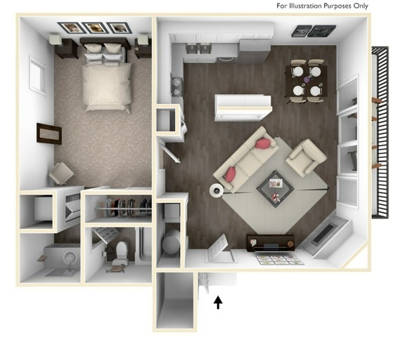 Modelo de apartamento: A1PDesde $8491 Dormitorio, 1 Baño, 700 sq ftDisponible Ahora![]()