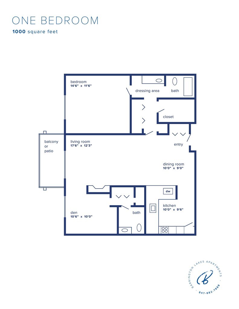 One Bedroom - Plano 3 Unidad de apartamento: 2230108Modelo de apartamento: One Bedroom$1,8501 Dormitorio, 1 Baño, 770 sq ftDisponible Ahora![]()