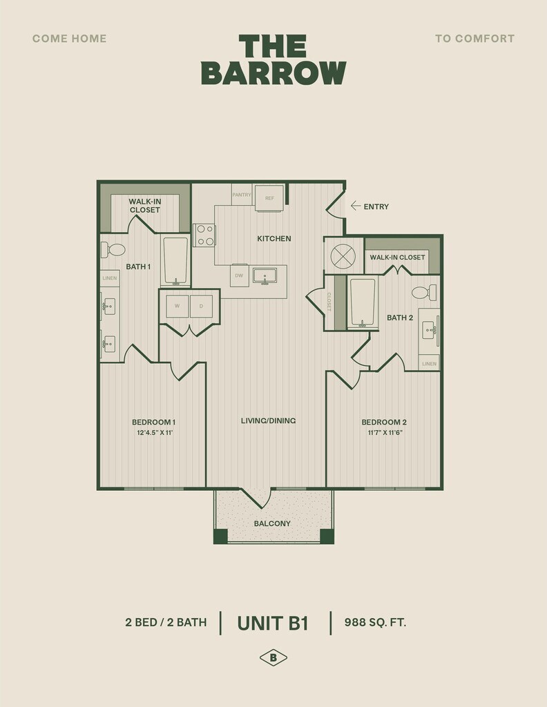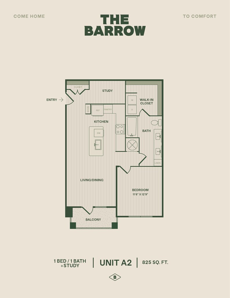 1 Dormitorio, 1 Baño, 825 pies²Disponible AhoraGalería del Modelo