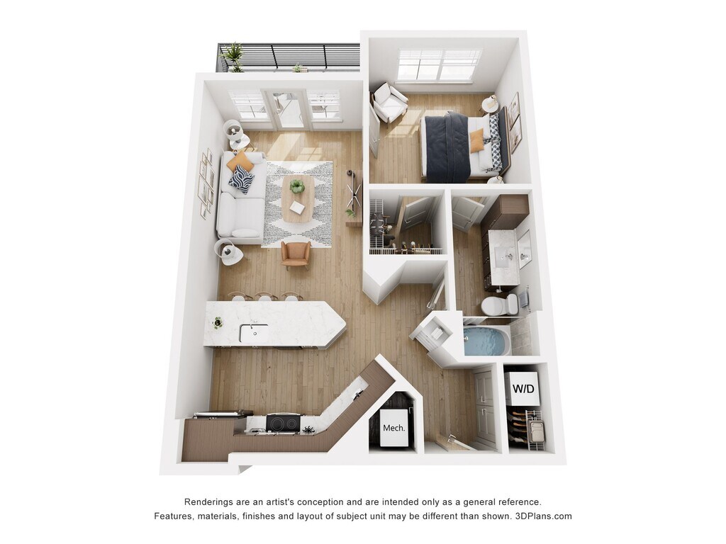 1 Dormitorio, 1 Baño, 764 pies²Disponible AhoraGalería del Modelo