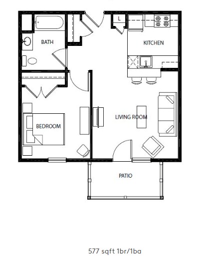 1 Dormitorio, 1 Baño, 612 pies²Galería del Modelo