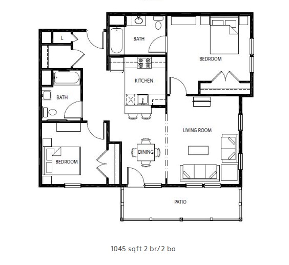 2 Dormitorios, 2 Baños, 1045 pies²El más grandeEsta opción tiene las unidades más grandes para este modeloGalería del Modelo
