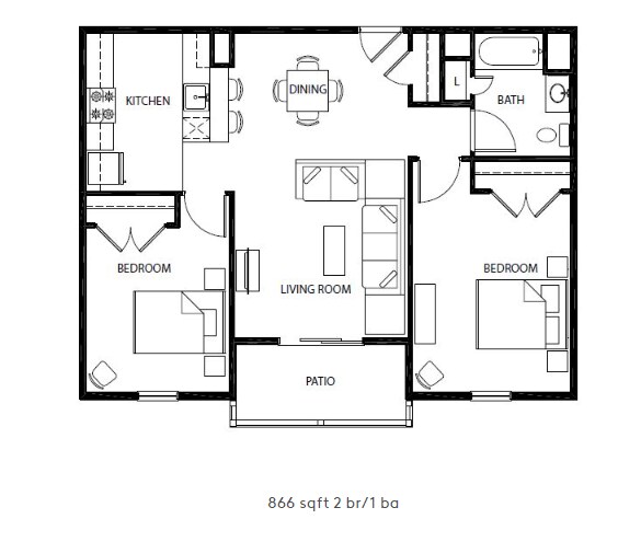 Modelo de apartamento: 2 BedroomLlame para Precios2 Dormitorios, 1 Baño, 866 sq ftNo Disponible![]()