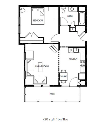 1 Dormitorio, 1 Baño, 720 pies²El más grandeEsta opción tiene las unidades más grandes para este modeloGalería del Modelo