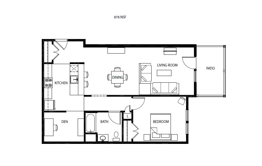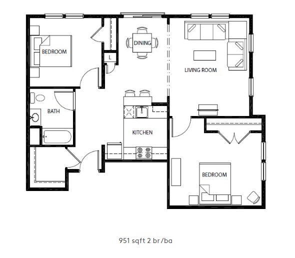 2 Dormitorios, 1 Baño, 951 pies²Galería del Modelo