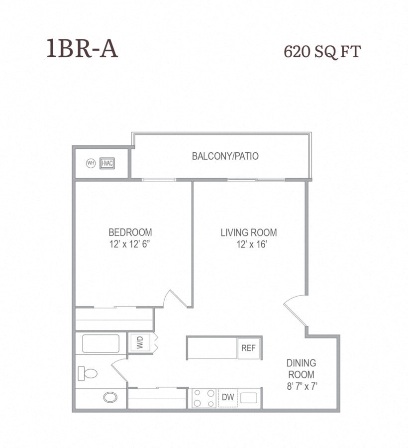 Modelo de apartamento: 1BR1-ALlame para Precios1 Dormitorio, 1 Baño, 620 sq ftNo Disponible![]()
