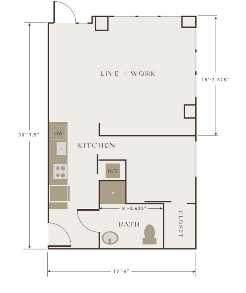Live/Work2 - Plano 12 Unidad de apartamento: 105Modelo de apartamento: Live/Work21 Dormitorio, 1 Baño, 663 sq ftDisponible February 10, 2026One Bedroom