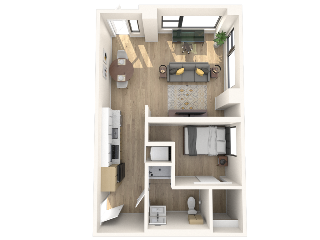 Unidad de apartamento: 303Modelo de apartamento: 0BR/1.0BAEstudio, 1 Baño, 313 sq ftDisponible Ahora![]()