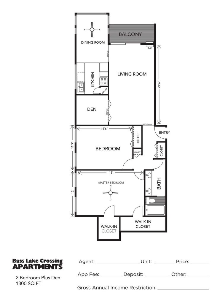 2 Bedroom + Den - Floorplan 1 Apartment Unit: 307Apartment Model: 2 Bedroom + Den$1,3532 Bedroom, 1 Bath, 1300 sq ftAvailable NowApartment Unit: 307Apartment Model: 2 Bedroom + Den$1,3532 Bedroom, 1 Bath, 1300 sq ftAvailable Now