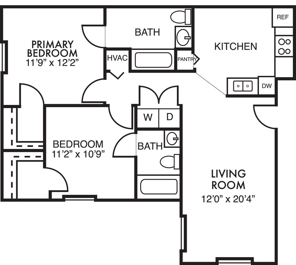 Modelo de apartamento: 1x1bDesde $1,1261 Dormitorio, 1 Baño, 771 sq ftDisponible Ahora![]()