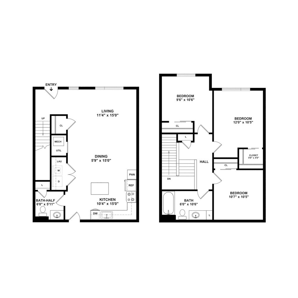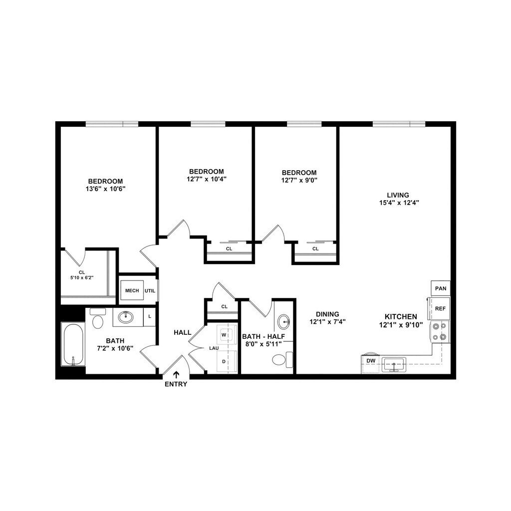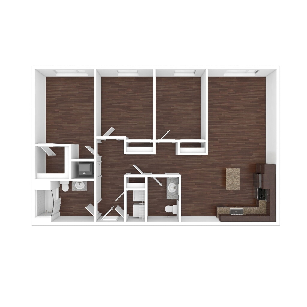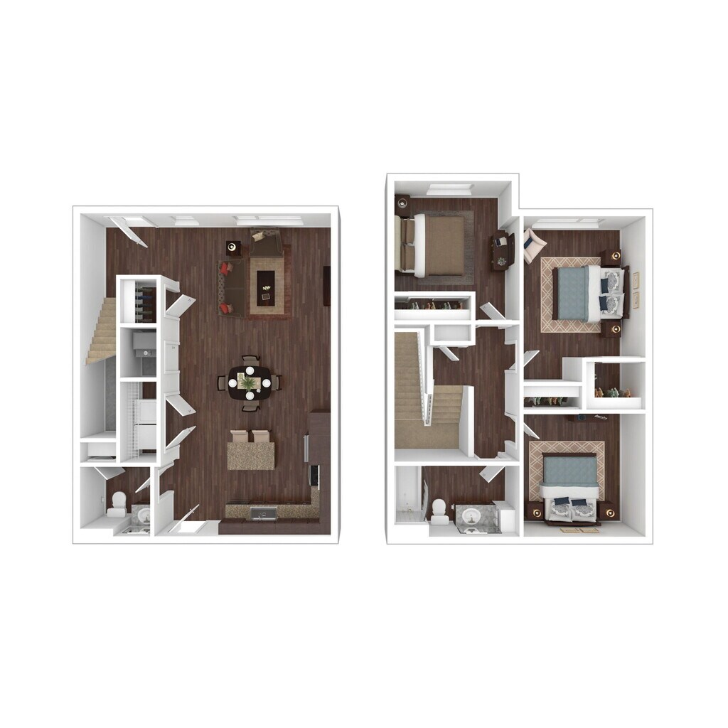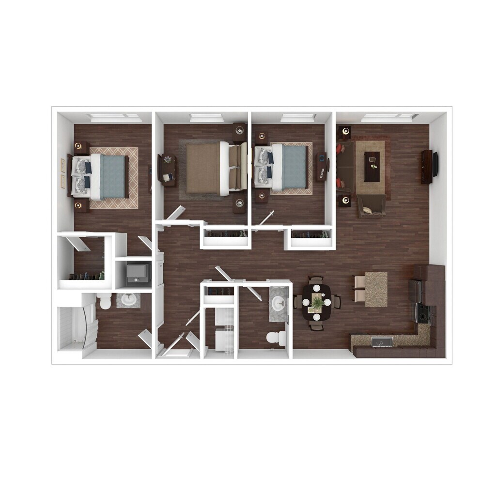 Modelo de apartamento: 3Bd/2BthDesde $1,1503 Dormitorios, 1.5 Baños, from 1232 sq ftNo Disponible![]()