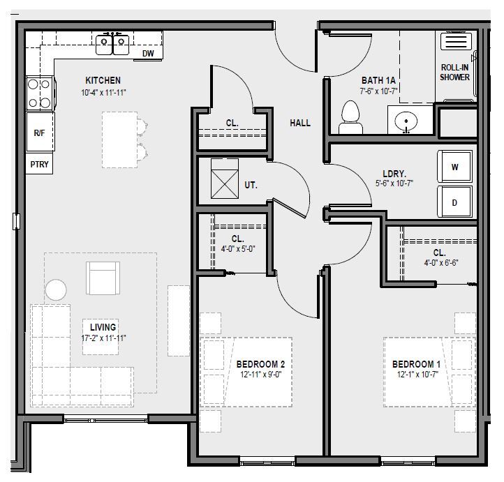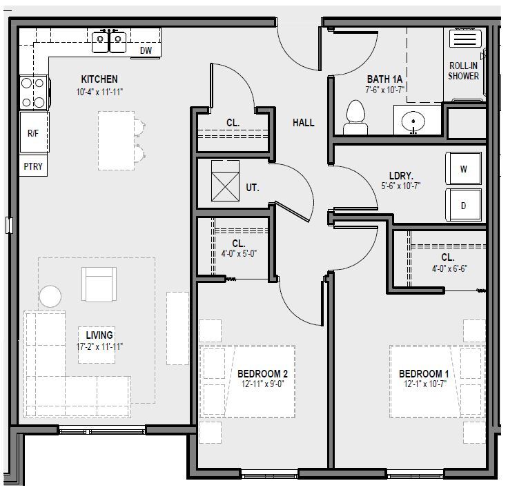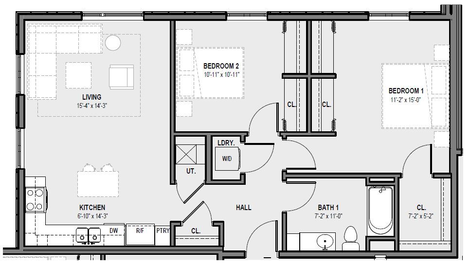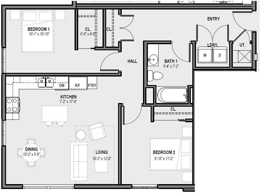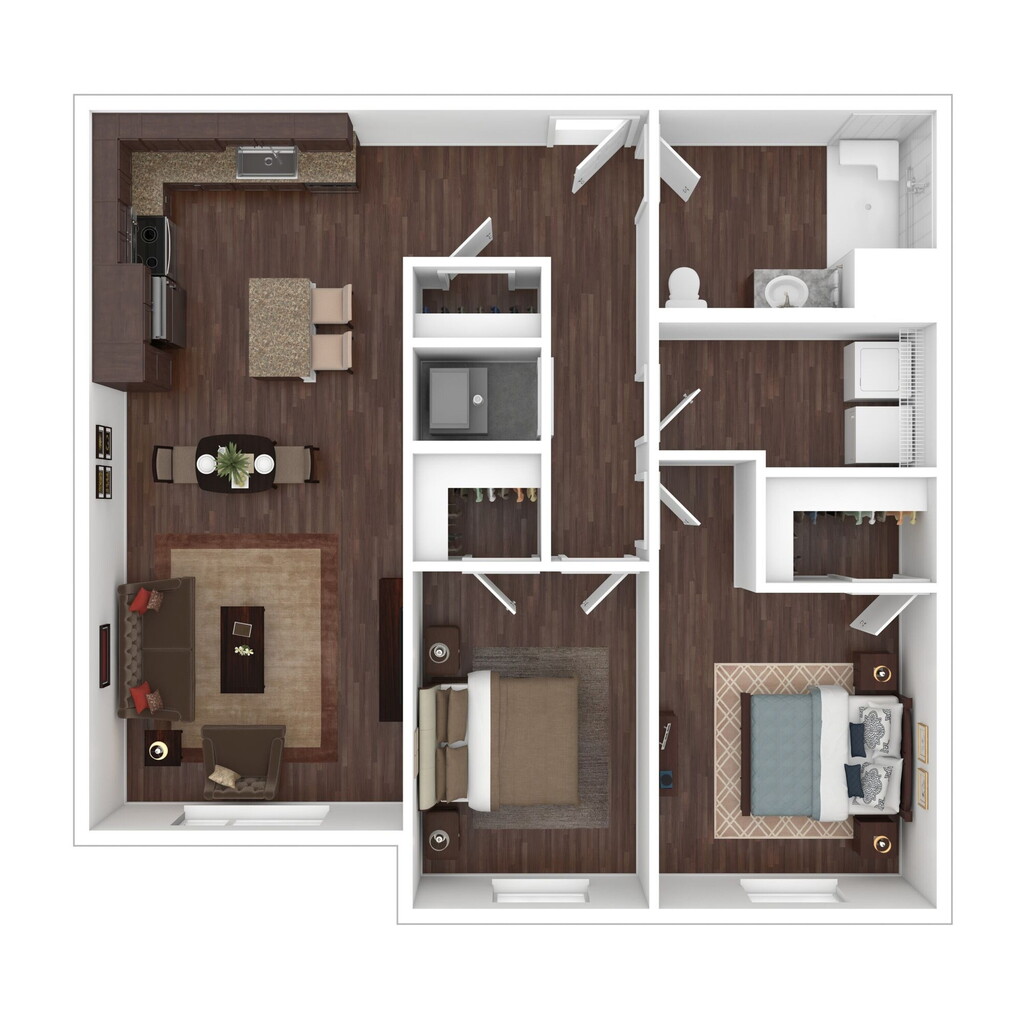 2 Dormitorios, 1 Baño, 987-997 pies²Galería del Modelo
