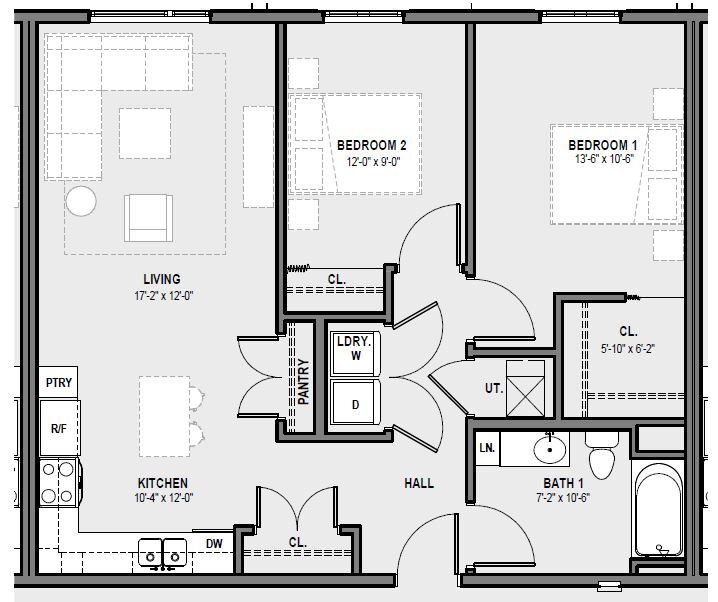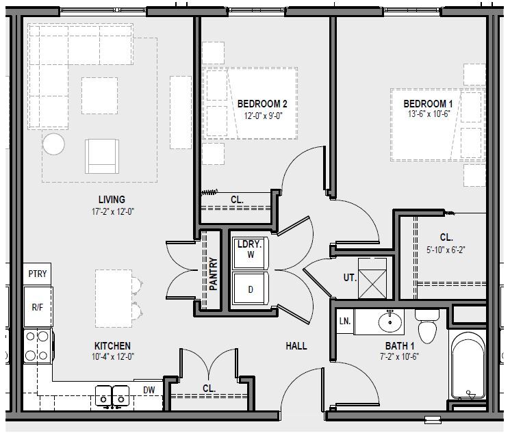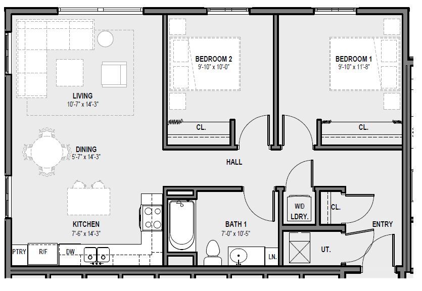 1Bd/1Bth - Plano 10 2 Dormitorios