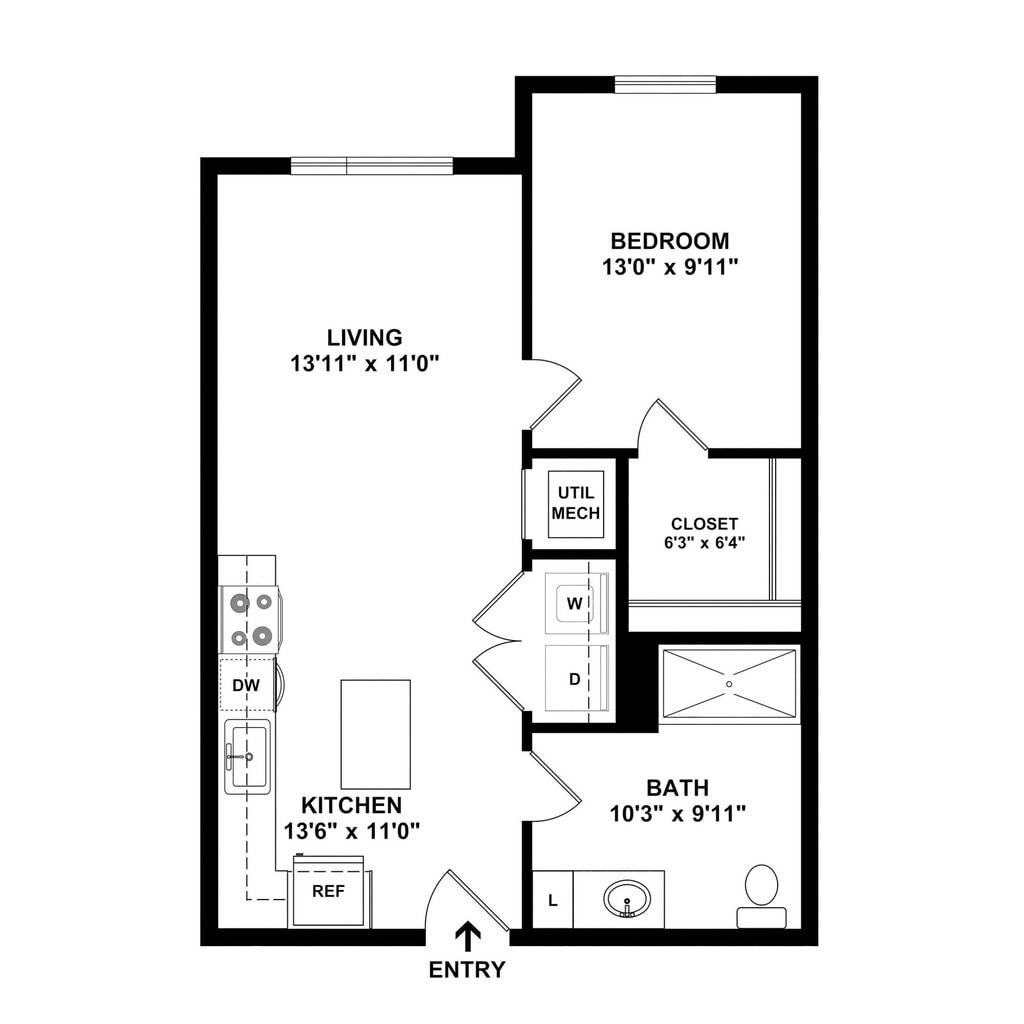 1 Dormitorio, 1 Baño, 731-741 pies²Galería del Modelo