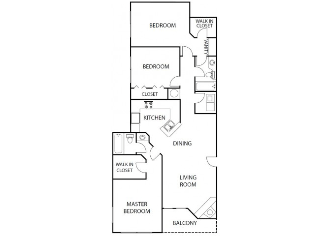Modelo de apartamento: A1ADesde $1,4011 Dormitorio, 1 Baño, 779 sq ftDisponible Ahora![]()