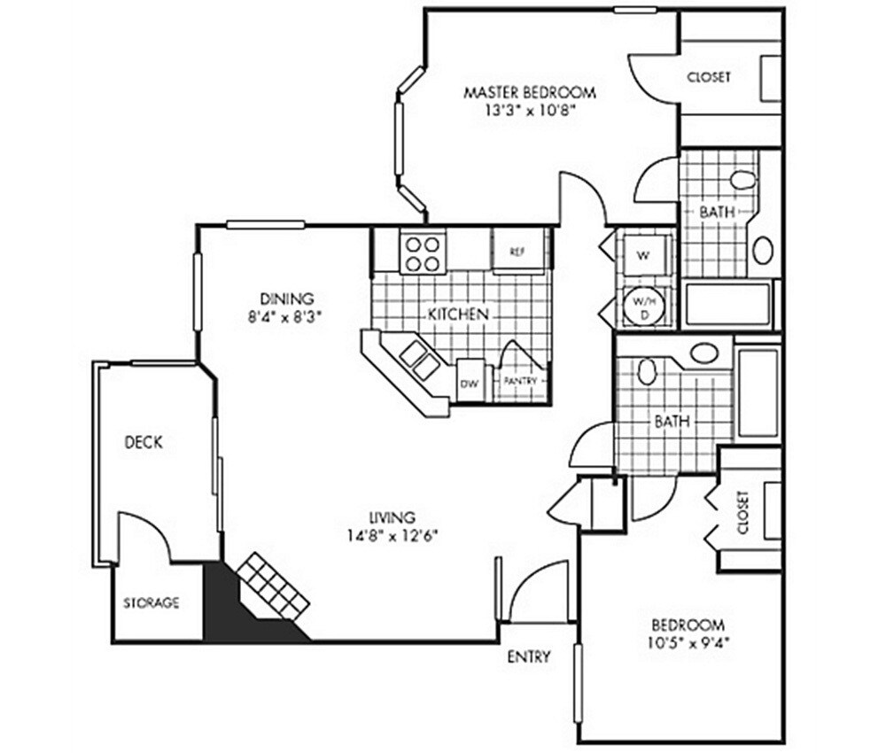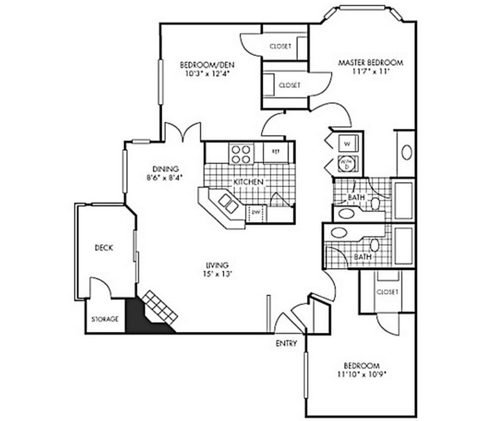Bainbridge - Plano 1 Los planos de la planta son una interpretación artística. Todas las dimensiones son aproximadas. Los tamaños o el detalle del producto real y sus especificaciones pueden variar. No todas las características están disponibles en todos los hogares para rentar. Los precios y la disponibilidad están sujetos a cambios. El alquiler que se muestra es mensual. Se pueden aplicar ciertos cargos, por ejemplo, entrega de paquetes, recolección de basura, agua, servicios, etc. Depositos varian. Consulta a un representante para conocer detalles.