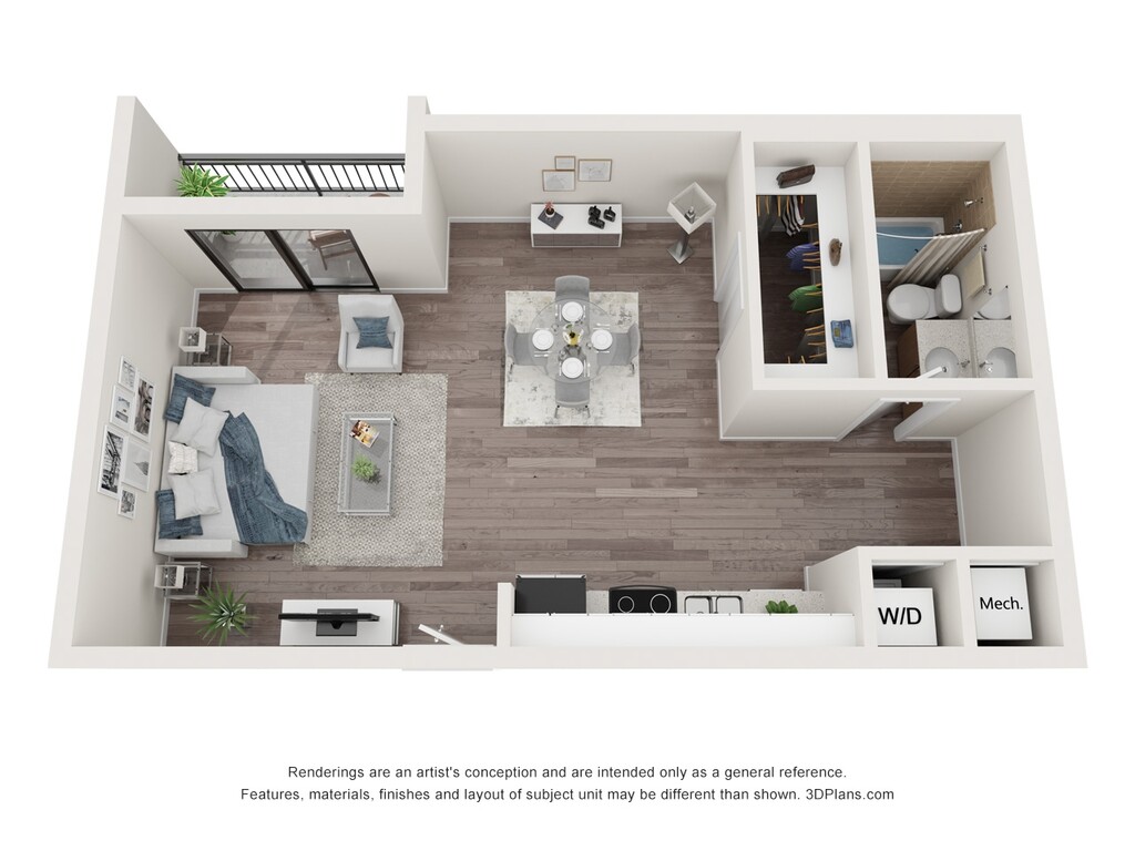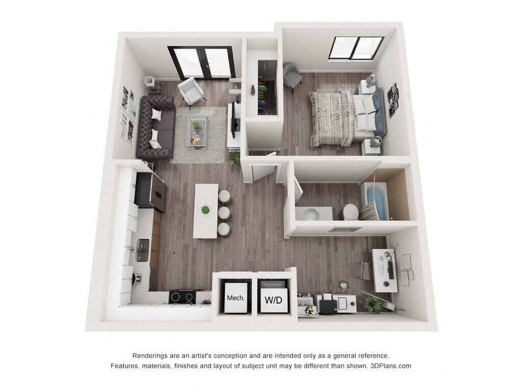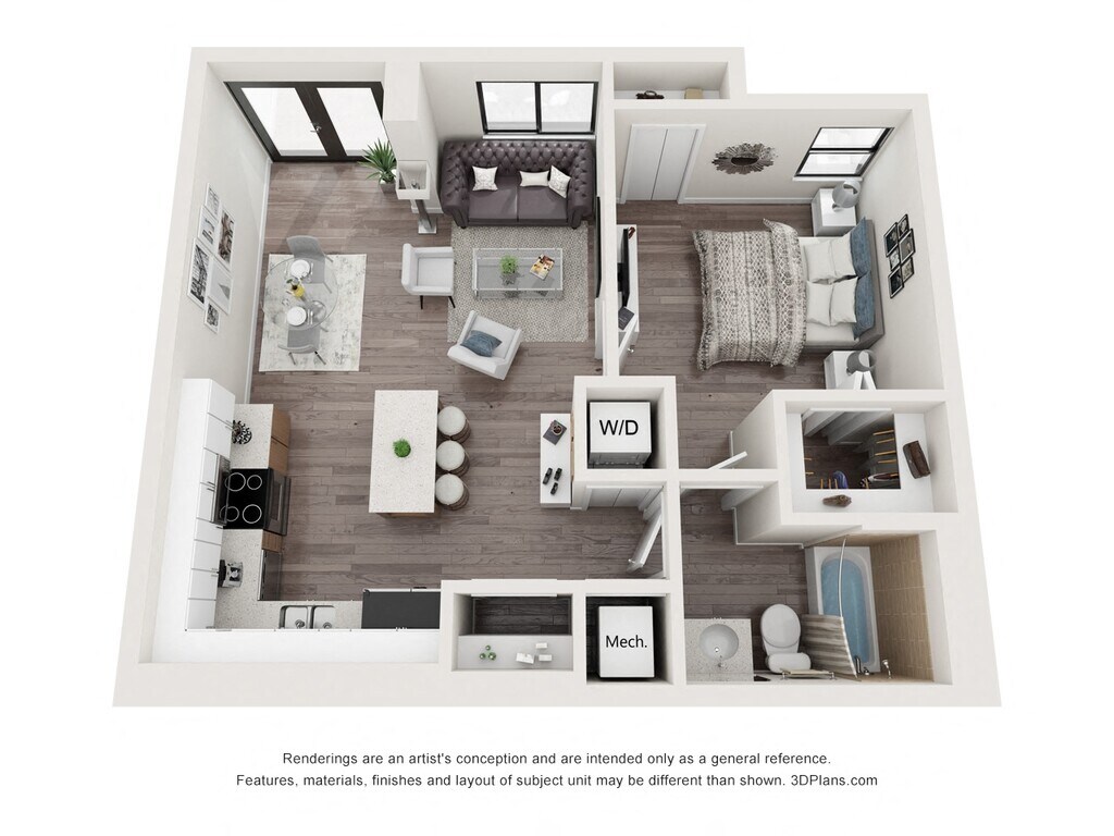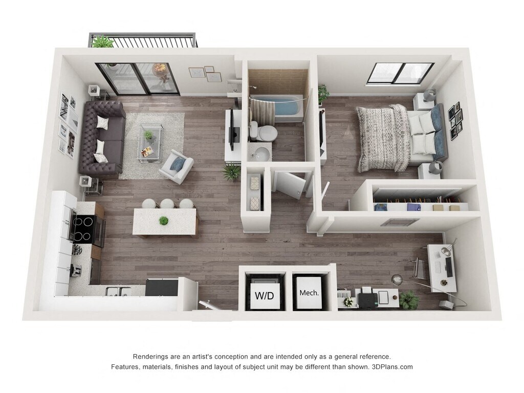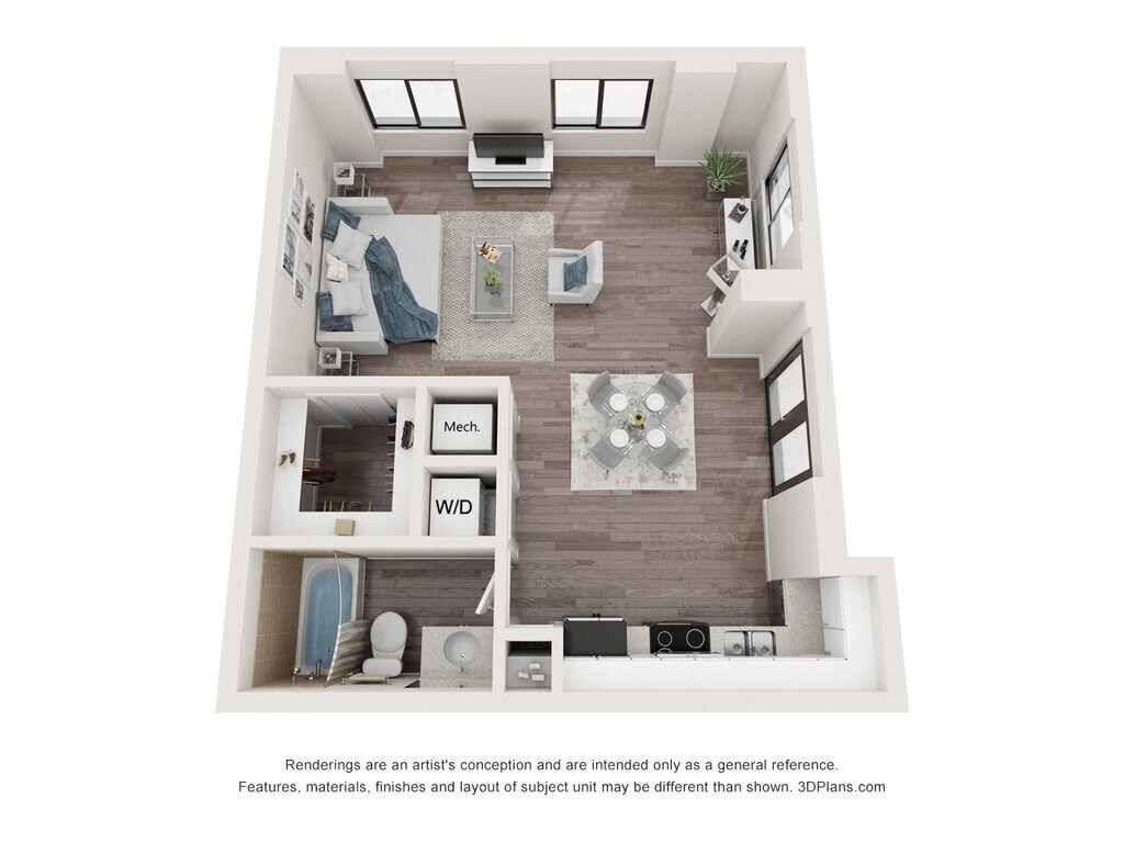Estudio, 1 Baño, 630 pies²Disponible AhoraGalería del Modelo