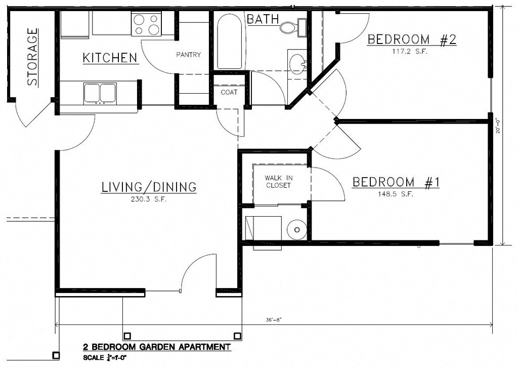 2 Dormitorios, 1 Baño, 900-920 pies²Disponible AhoraGalería del Modelo