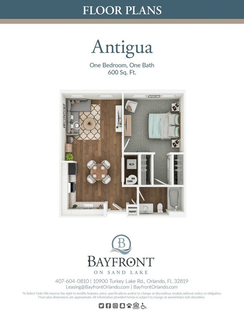 Bayfront On Sand Lake ofrece apartamentos de 1 a 3 Dormitorios desde $1,700 con 600–1,348 pies cuadrados. Aquí está el precio actual y la disponibilidad: