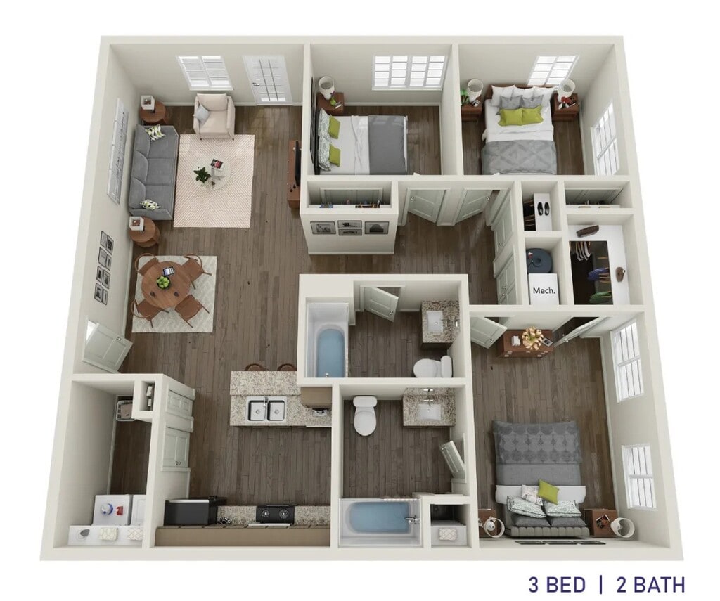2 Bed 2 Bath - Plano 3 3 Dormitorios