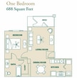1 Dormitorio, 1 Baño, 688 pies²Disponible AhoraGalería del Modelo