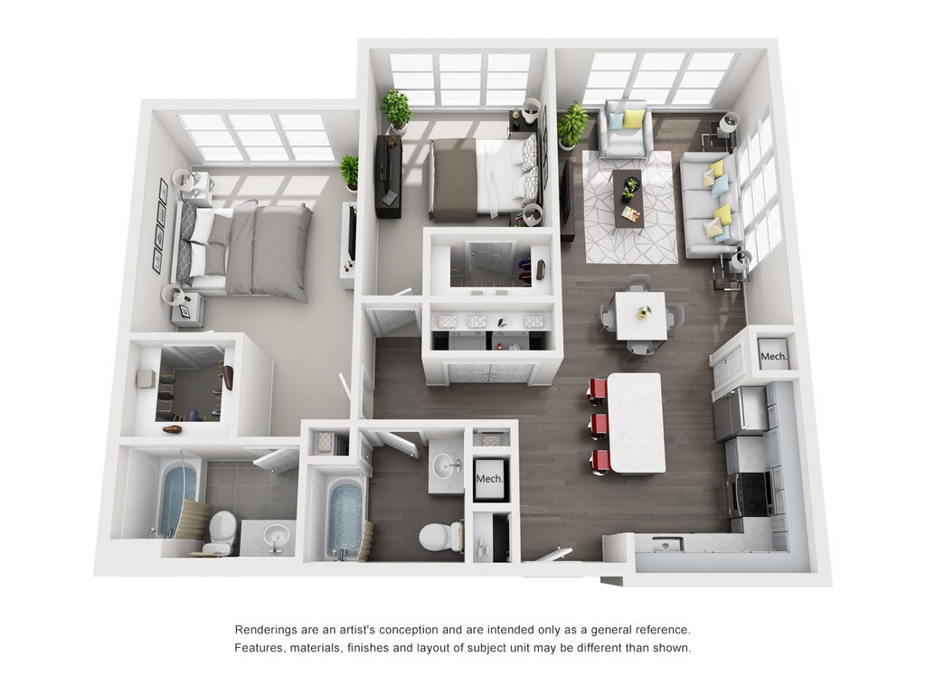 2 Dormitorios, 2 Baños, 1080 pies²Más CargosDisponible AhoraGalería del Modelo