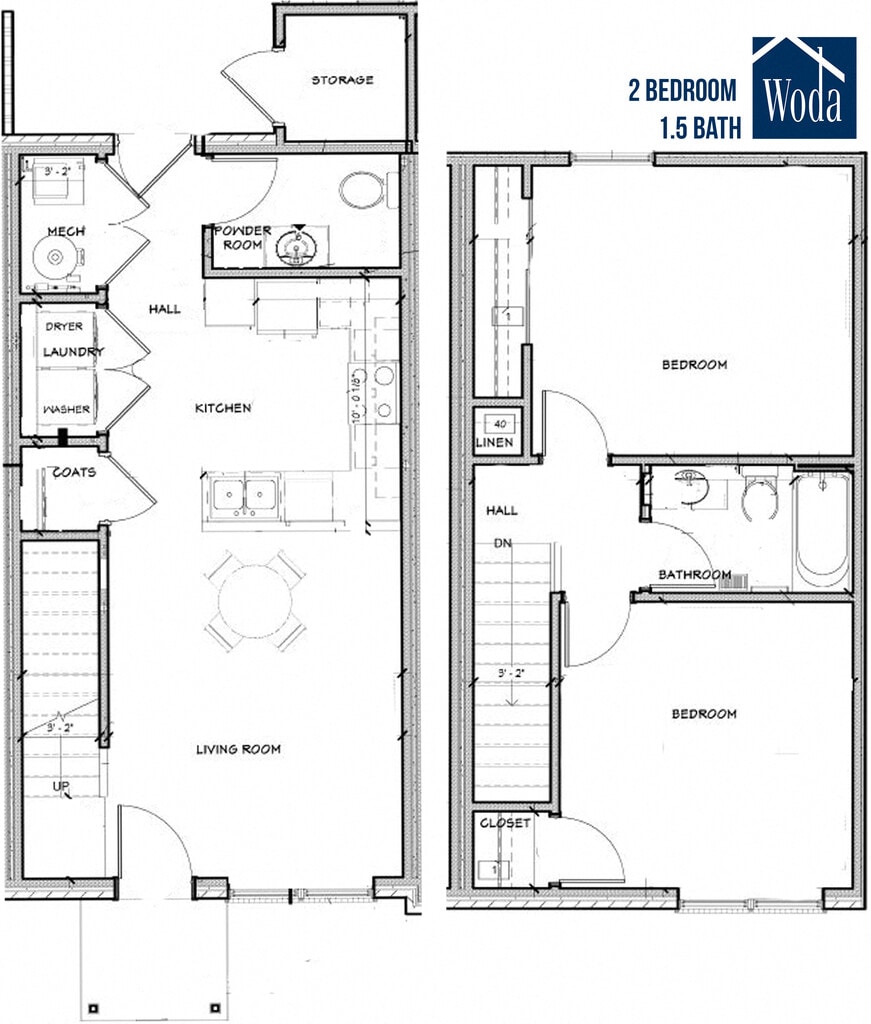 2 Dormitorios, 1.5 Baños, 822-865 pies²Galería del Modelo