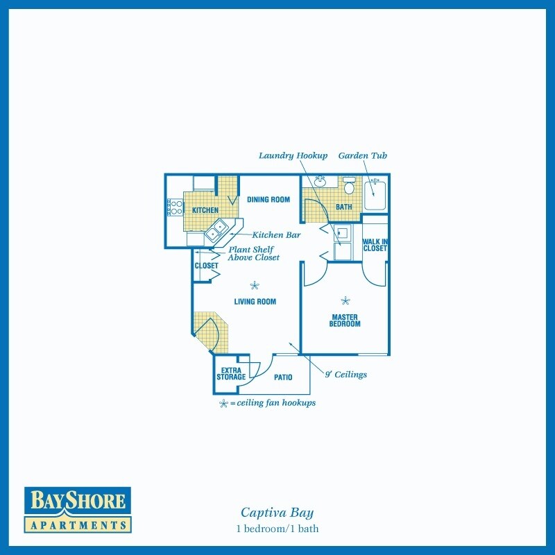 B Monterey Bay 1.1 Up - Plano 1 Unidad de apartamento: 1578CModelo de apartamento: B Monterey Bay 1.1 Up1 Dormitorio, 1 Baño, 688 sq ftDisponible November 28, 2025D Captiva Bay 1.1 Up