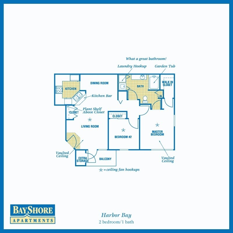 Modelo de apartamento: E Harbor Bay 2.1 Up2 Dormitorios, 1 Baño, 945 sq ftDisponible Ahora![]()