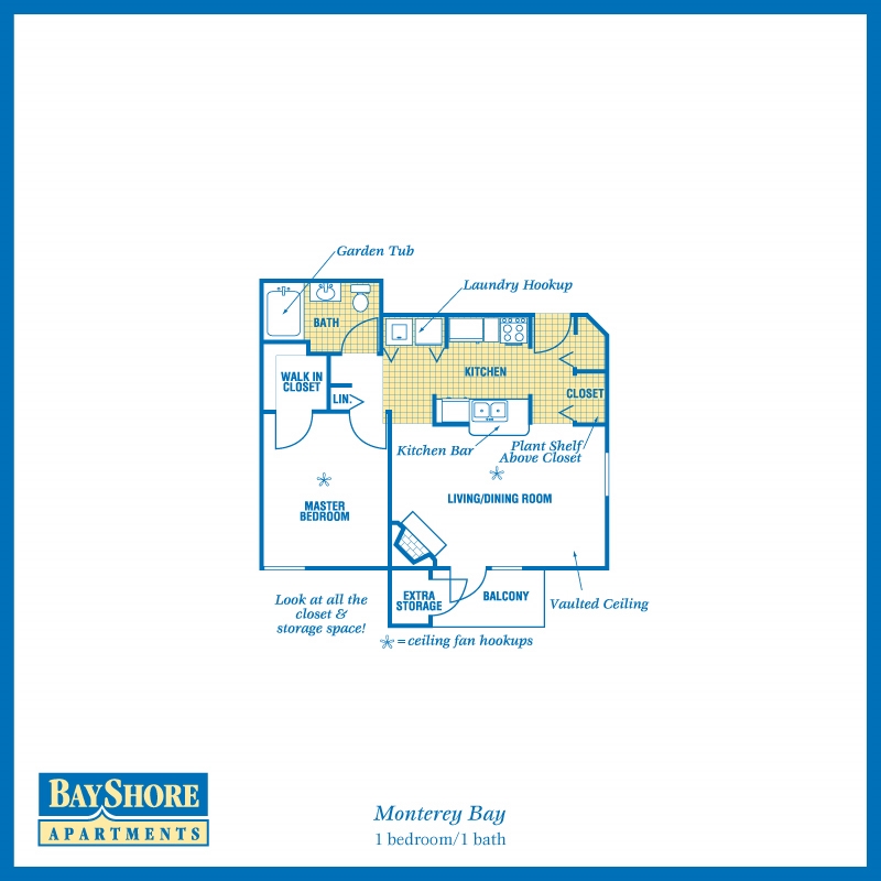 Modelo de apartamento: B Monterey Bay 1.1 Up1 Dormitorio, 1 Baño, 688 sq ftDisponible November 28, 2025![]()