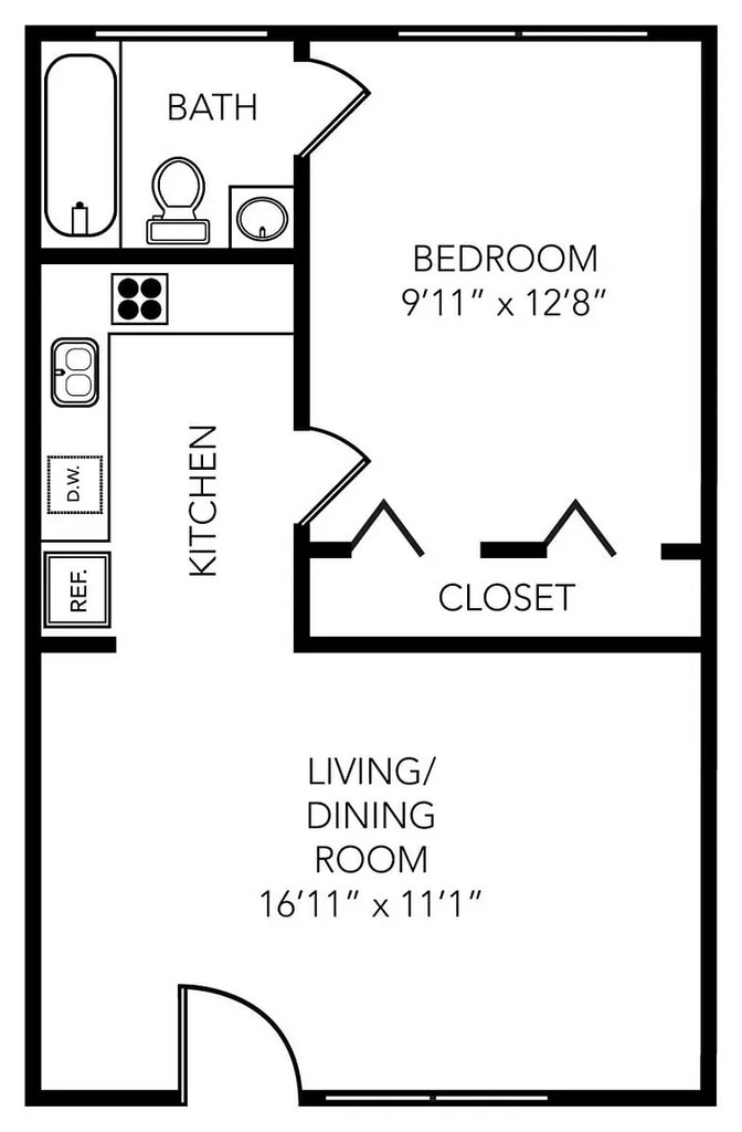 Modelo de apartamento: A1Desde $1,7881 Dormitorio, 1 Baño, 450 sq ftDisponible AhoraPlanosFotos![]()