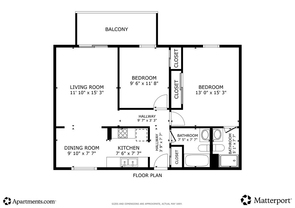 Modelo de apartamento: 2x1-B2$2,7002 Dormitorios, 1 Baño, 864 sq ftDisponible Ahora![]()