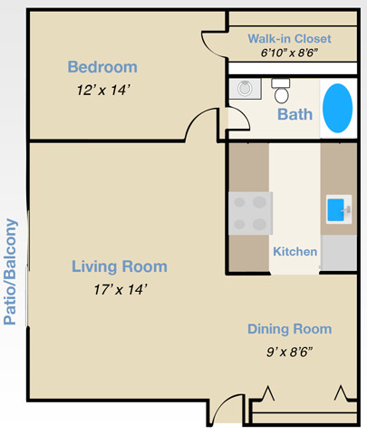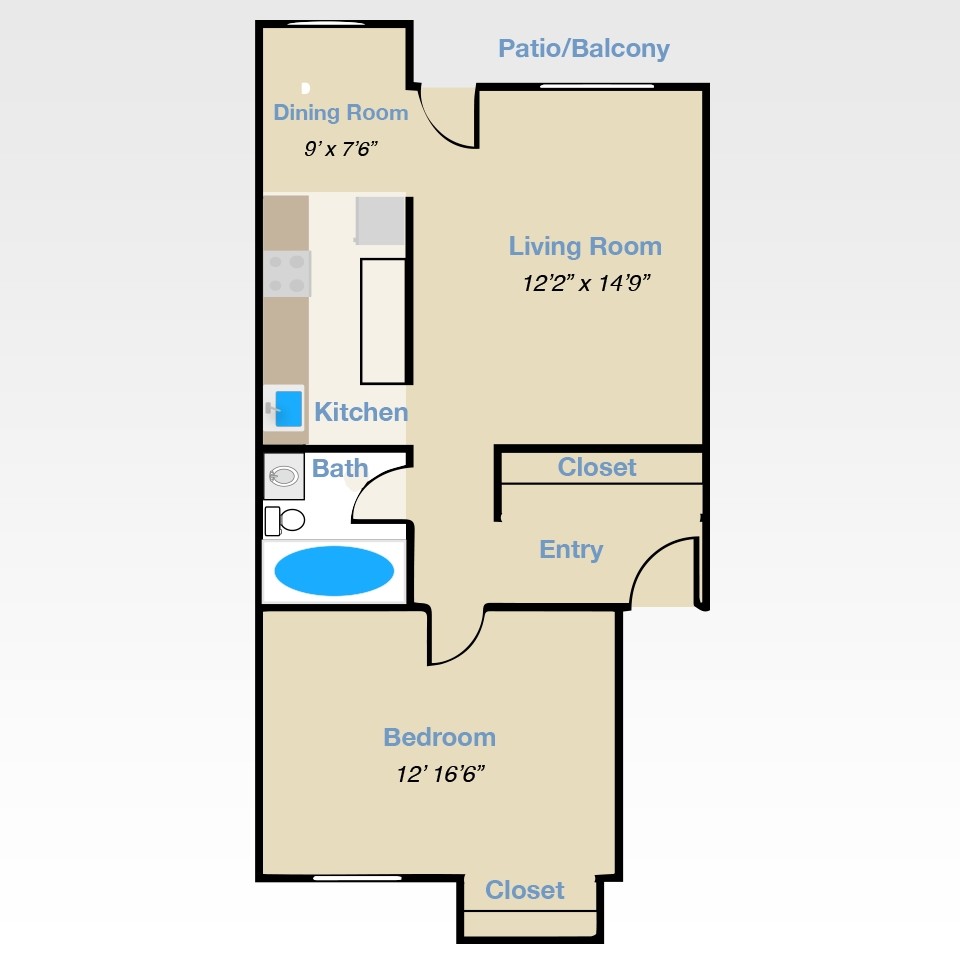 1 Dormitorio, 1 Baño, 740 pies²Galería del Modelo
