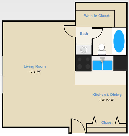 Estudio, 1 Baño, 482-500 pies²Disponible Oct 17Galería del Modelo