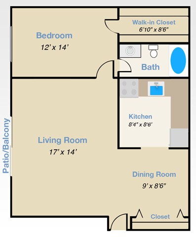 1 Dormitorio, 1 Baño, 740 pies²Disponible AhoraGalería del Modelo