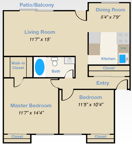 Modelo de apartamento: The OspreyLlame para Precios1 Dormitorio, 1 Baño, 740 sq ftNo DisponibleThe Osprey - Plano 1 2 Dormitorios